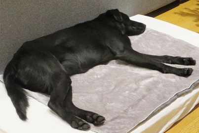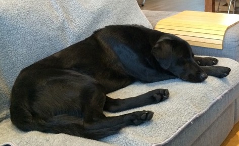 - gut dass wir keinen hundekorb gekauft haben, er schläft nämlich ausgestreckt, da braucht er fast die ganzen 140cm matratzen, die er von den kindern geerbt hat...