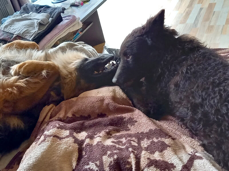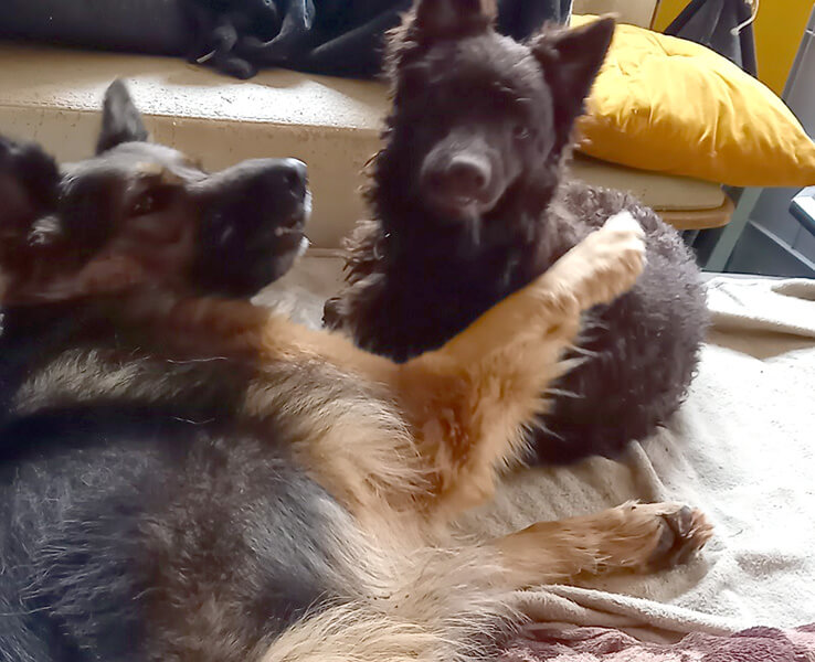 Besonders beim Spazierengehen merkt man, dass ihm Kira eine Sicherheit gibt. Mittlerweile bewegt er sich im ganzen Haus und hat mit Kira unseren Garten zu einem Acker umgewandelt😂😂
