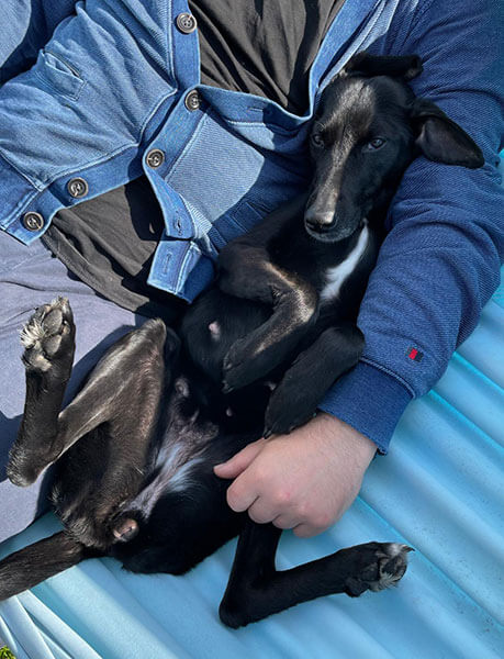 Mit Pablo klappt alles gut. Die zwei beschnüffeln sich freundlich und kuscheln auch mal zusammen im Bett aber sie kleben jetzt nicht den ganzen Tag aufeinander. Ich glaube sie ist Pablo manchmal ein bisschen zu wuselig, vor allem, wenn sie ihre verrückten 5 Minuten hat.