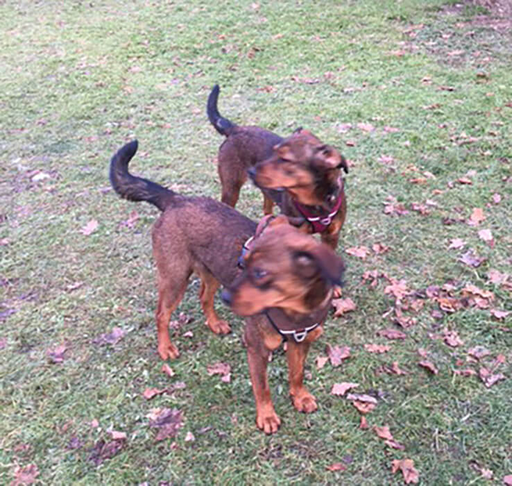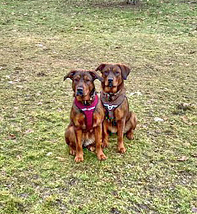 Sind schon am Trainieren und Geräusche gewöhnen. "Sitz" und Heranrufen funktioniert schon. Die Beiden haben schon richtig viel gelernt!