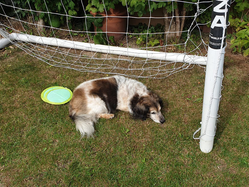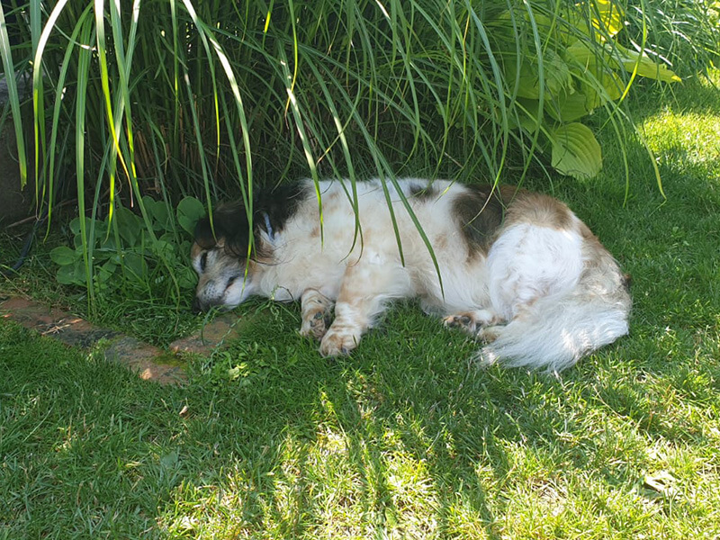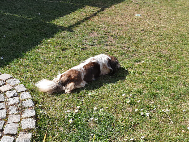Sein größtes Vergnügen ist genüsslich im Gras zu liegen, zu dösen oder einfach tief und fest zu schlafen.