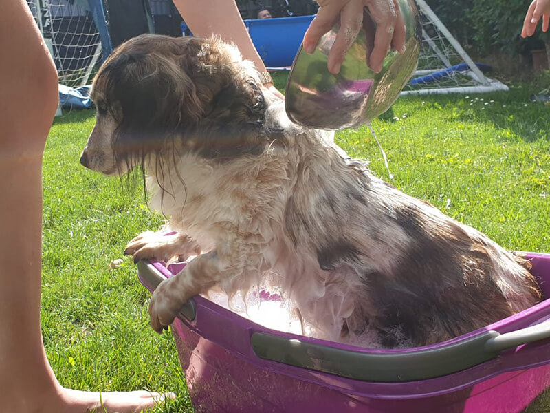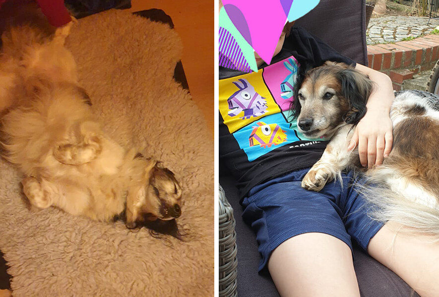 Im Haus hat unser blinder Opa überhaupt keine Probleme mehr, während des Covid19 – Lockdowns war er mein „Assistent“ und ist mir nicht von der Seite gewichen, außer sein bester Freund – mein 7jähriger Sohn – hat mit ihm gespielt oder gekuschelt. Mit seiner verschmusten, anhänglichen und ruhigen Art hat er uns sehr geholfen, er war für uns ein Segen in dieser für die ganze Familie sehr schweren Zeit.