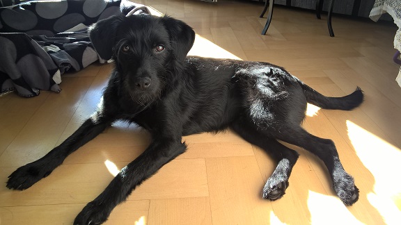 Alle unsere Bekannten sagen, dass wir mit ihm einen Goldgriff gemacht haben. Aber das wissen wir! Selbst unsere beiden Patenkinder, welche eher aufgrund ihrer Herkunft nicht so mit Tieren vertraut sind, mögen Matthew. Das ist zusätzlich schön zu beobachten! Auch ist das Zusammenleben mit Mika, unserer Katze, erfreulich. Manchmal gibt es für sie Bussis über das ganze Gesicht, dann wird beim Knochennagen im Körbchen ein wenig geknurrt, aber danach gibt es gleich wieder einen Lauf durch die Wohnung. Und unsere Katze genießt es, wieder einen Hund als ihren Gefährten zu haben.