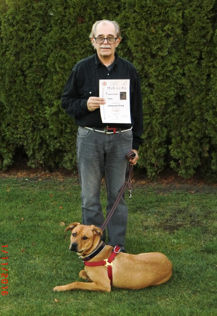 Ende Oktober hat sie die Welpenprüfung mit 97 von 100 Punkten - vorzügliche Bewertung – abgelegt. Jetzt geht es weiter mit dem Familienkurs.