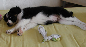 Na und dann zu Hause, ich kann euch sagen da ging die Post ab. Zwei große Hunde standen vor mir, da hab ich mich so gefreut die haben mich gleich freundlich begrüßt. Mit den beiden habe ich mächtig Spaß die sind ganz toll. Der Sam passt so gut auf mich auf, mir kann gar nichts mehr passieren. Der Odin schimpft manchmal mit mir wenn ich zu frech bin, aber das macht mir nichts ich bin halt wieder für kurze Zeit brav und dann geht
