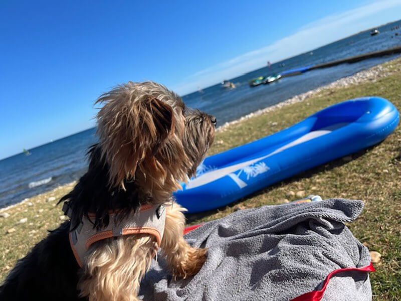 Wir haben Minni von Anfang an überall hin mitgenommen. Sie ist nun seit 4 Monaten bei uns und war 3 Mal in Kroatien, einige Male in Wien, in Kärnten, in den obersteirischen Bergen, kurz und gut, Minni ist fast überall dabei.