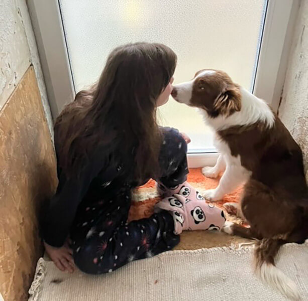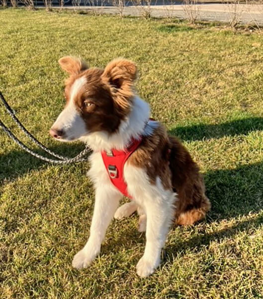 Er durfte gleich in den Garten und unsere anderen beiden Border Collies kennen lernen.