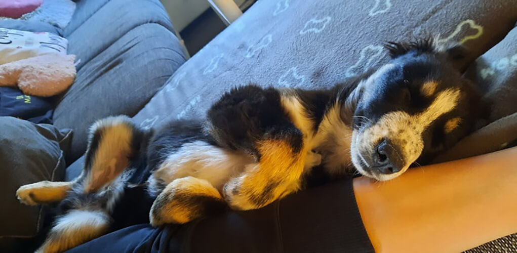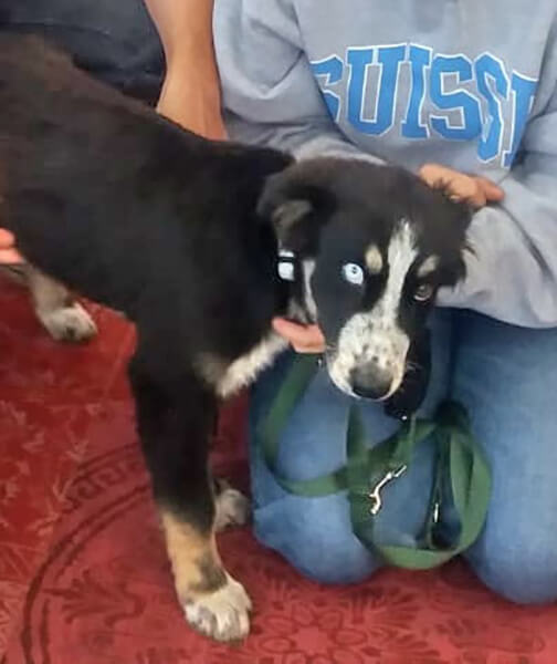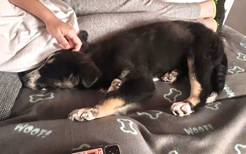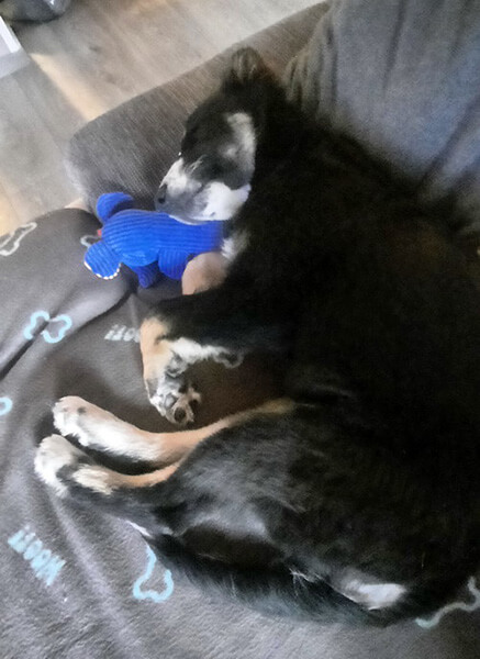 Mogli hat sich super eingelebt, geht furchtbar gerne spazieren, ist schon fast stubenrein und ein richtiger Kuschelbär.