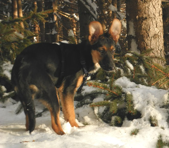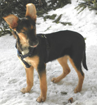 Mona genießt es, im Schnee zu spielen. Sie wird von allen Menschen sofort bemerkt und man merkt, dass sie Freude am Leben gewonnen hat.
