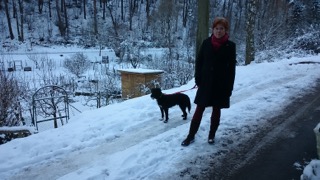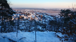 auf dem Sofa, beim Spaziergang mit meiner Frau, mit Blick von oben auf den Ort ins Rheintal, im Hof ... und das alles bei Schnee, der hier eher selten fällt.