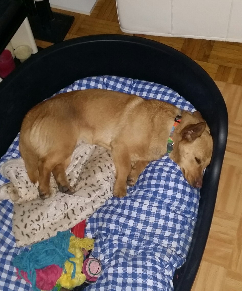Müsli hat sich schon eingelebt, sie versteht sich gut mit den Katzen und ist sehr brav.