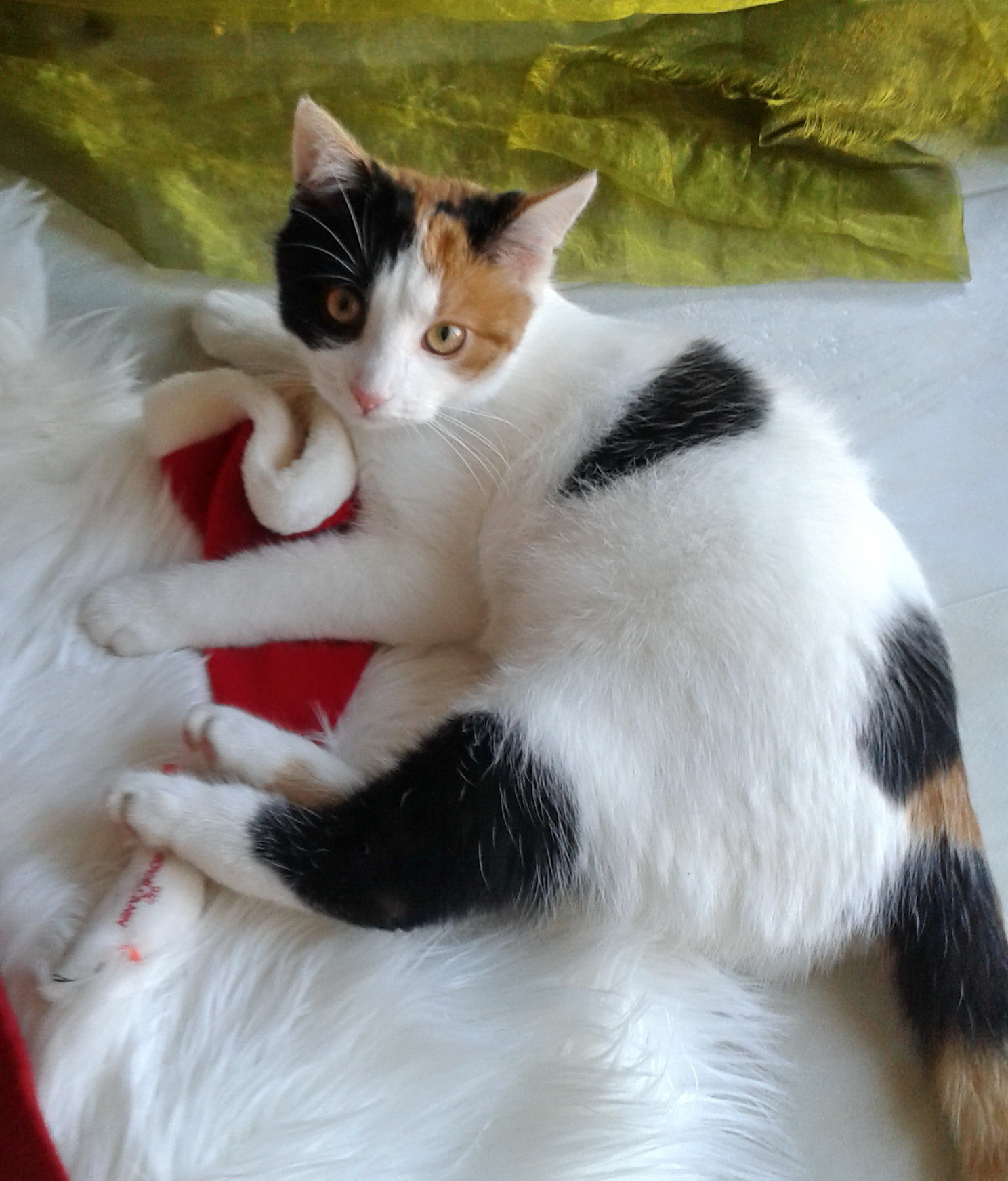 Trixi, die kleine Knutschkugel strotzt hingegen vor Gesundheit. Der erneute Leukose- aber auch FIP Test waren negativ! Darüber bin ich so unendlich glücklich, ich kann es gar nicht sagen. Wenn sie sich bei Muffin angesteckt hat (der allererste Test war ja leicht positiv) dann hat sie das Virus Dank der Impfung und den Vitaminpräperaten, die ich ihr gleich verabreicht habe, selbstständig wieder eliminiert. Mein Weihnachtswunder, auch wenn es nur ein kleines ist!