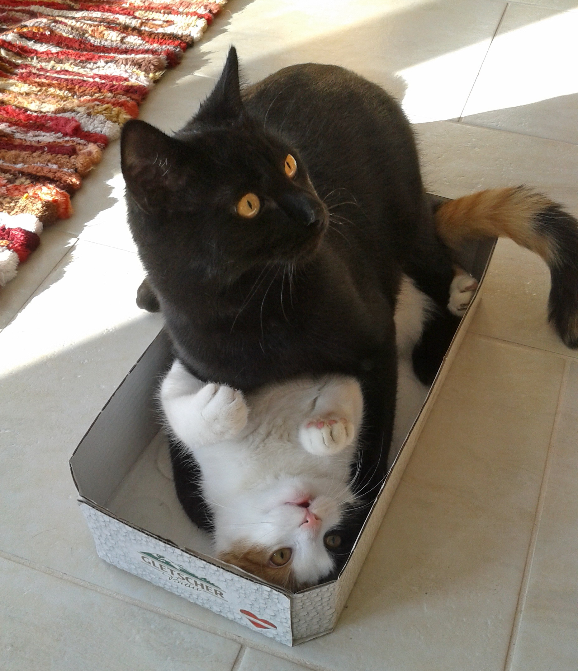 Muffin und Trixi geht es sehr gut. Das Christkind war sehr brav dieses Jahr und hat neben einen riesen großen neuen Kratzbaum auch einen riesen Rascheltunnel und jede Menge Spielzeug gebracht. Auch der Christbaum ist - hingegen den Erwartungen - noch nicht ohnmächtig geworden :-) Obwohl der Platz unter dem Baum heiß begehrt ist zum Spielen! Wir werden uns natürlich im neuen Jahr wieder melden um zu berichten wie es den beiden geht.