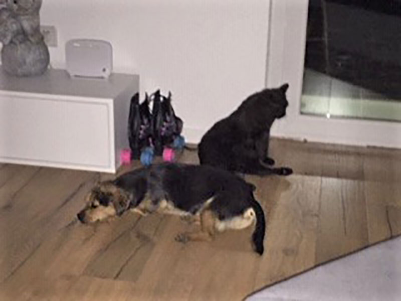 Er hat sich toll eingelebt, liebt Kinder, verträgt sich mit unserer Katze und ignoriert die Kaninchen in unserem Garten. Er hört sogar so gut, dass er im Wald frei laufen darf. Das liebt er sehr!