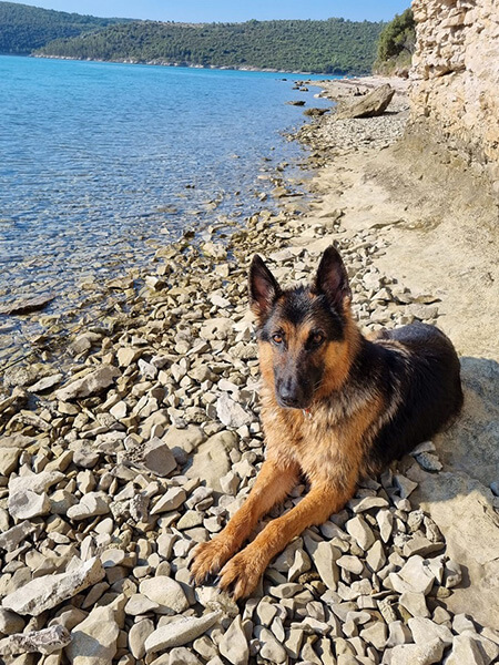 Auf dem letzten Foto ist Nico ziemlich erschöpft vom Schwimmen und den Kampf um mein großes Liegetuch, den er natürlich gewonnen hat. 😉
