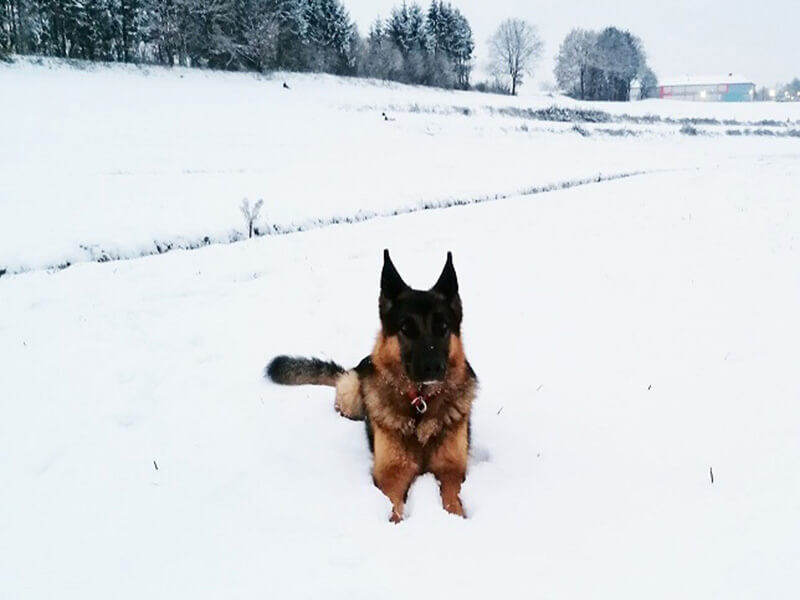 Seine Bekanntschaft mit dem Schnee - bei uns dieses Jahr zur Genüge vorhanden - hat ihm und auch mir Spaß gemacht. Lange Spaziergänge im Schneetreiben taten ihm und mir gut. Anbei ein paar Fotos von ihm, wobei beim letzten das "Platz" nicht so einfach war. Es war eine sehr große verschneites Wiese und einige Kinder rutschten mit Rodeln auf der steileren Seite herunter. Das Gekreische und Gejaule war Nico nicht geheuer. Wir suchten beide bald das Weite.