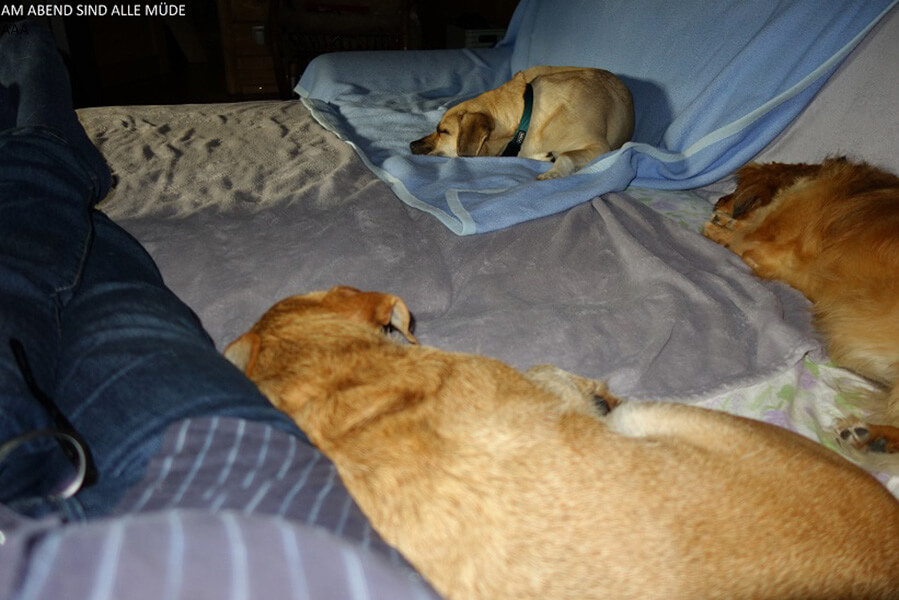 Nils hat nun sein Rudel, seinen Platz und er ist versorgt. Durch diese Sicherheit zeigt er immer engere Bindung an uns und hat keinerlei Fluchttendenzen mehr. Sein wachsendes Selbstbewusstsein zeigt uns, dass wir ihm seine Würde als Individuum wiedergegeben haben, er ist nicht mehr der "Underdog", der überall verjagt wird, der weggetreten, mit Steinen beworfen oder auch geschlagen wird. Anders ausgedrückt: Nils ist einfach bei uns angekommen.