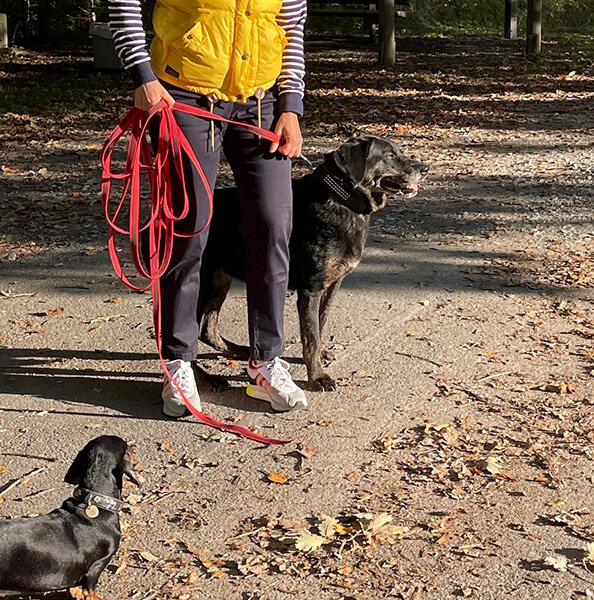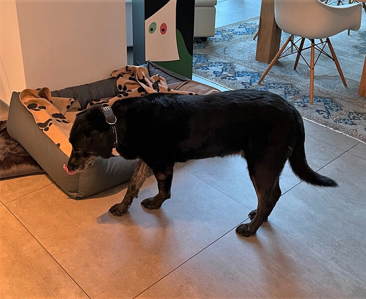 Wir gehen mir ihr täglich morgens, mittags und abends jeweils eine Stunde spazieren und das genießt sie sehr. Es gibt für sie so vieles zu entdecken. Die Hunde in der Nachbarschaft, das freie Laufen im Wald und immer wieder schnuffeln. Es ist so schön anzuschauen, wie sie sich in nur 2 Wochen bei uns entwickelt hat. Sie bekommt wieder Muskulatur, hat eine ganz andere Körperspannung.