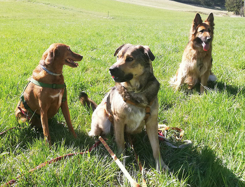 Alle drei Hunde verstehen sich super, für mich „hörbare“ Meinungsverschiedenheiten gibts so gut wie nie.
