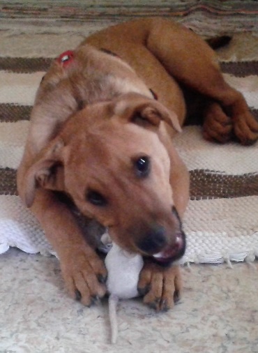 Ja, wir haben sehr viel Freude mit Pascal. Er wurde ein ganz schön großer Kuschelbär. Eigentlich ist er sehr gemütlich, faulenzen ... in jeder Zeit. Aber natürlich wenn es um Spielen geht, ist er immer dabei. Die lange Spaziergänge mit freien Laufen am Felder genießt er besonders. Eine große seine Leidenschaft ist das Brennholzfressen :). Der bringt uns immer zum Lachen ...