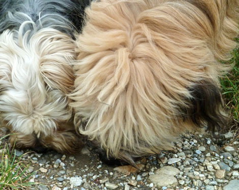 Wir sind viel unterwegs in Wald und Flur und natürlich sind sie auch bei Ausfahrten immer dabei. Egal, wo wir sind, ob hier im Dorf oder in Wien, sie benehmen sich immer gut und sind überall gerne gesehen. Auch mit anderen Hunden gibt es keine Probleme und da beide auf Pfiff sofort kommen, dürfen sie auch relativ viel frei laufen. Vor allem Simon braucht das, damit er seine jugendlich überschüssige Energie los werden kann. Es ist eine Freude, ihm zuzusehen, wie er über die Felder und Wiesen tobt. Am liebsten ist ihm aber, wenn er über Gräben und Bäche springen kann, im Wasser und Schlamm waten und sich hinterher in den Häckselrückständen auf den abgeernteten Maisäckern wälzen kann. Hundeleben vom Feinsten *g*