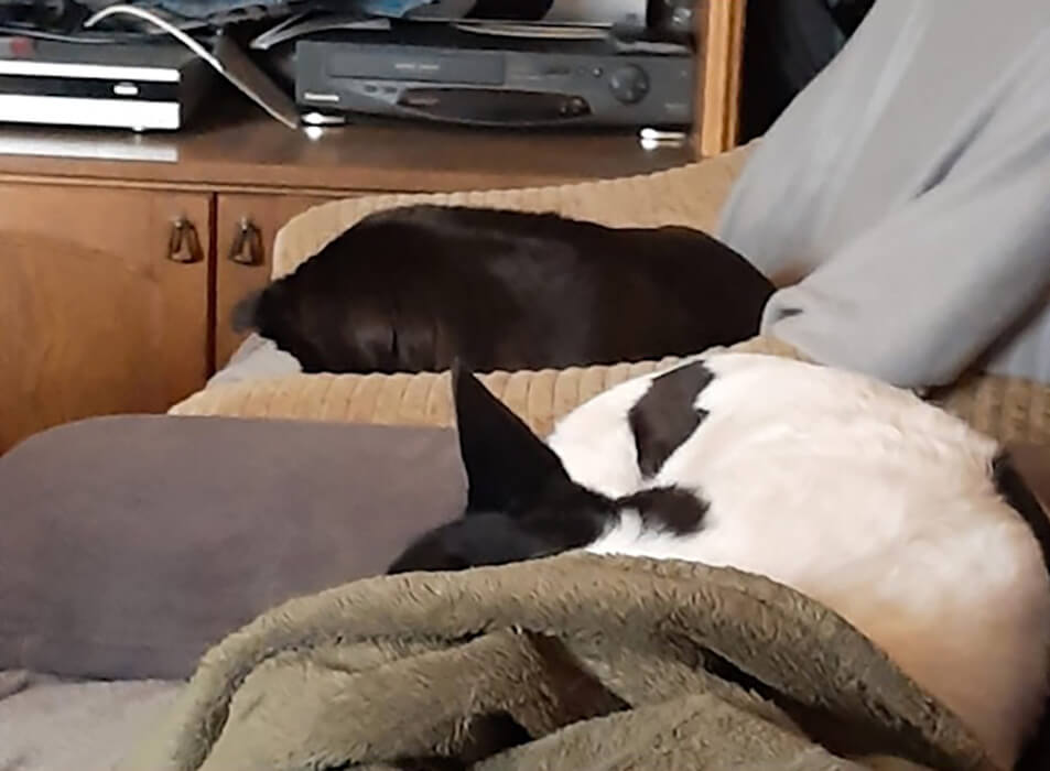 So, jetzt legen wir uns auf die Couch für ein Mittagsschläfchen, gemeinsam mit Fraudi und Nina, damit wir dann wieder Kraft haben zum Balli nachlaufen.
