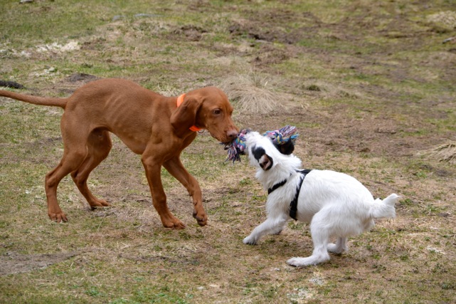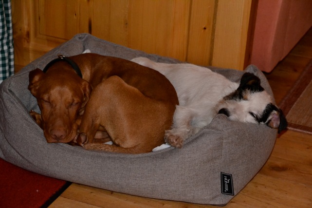 Im Urlaub waren wir auch schon mit ihr wo sie sich mit dem Viszla Welpen unserer Bekannten angefreundet hat und sich selbstbewusst gegen den ungestümen jungen Mann durchgesetzt hat.
