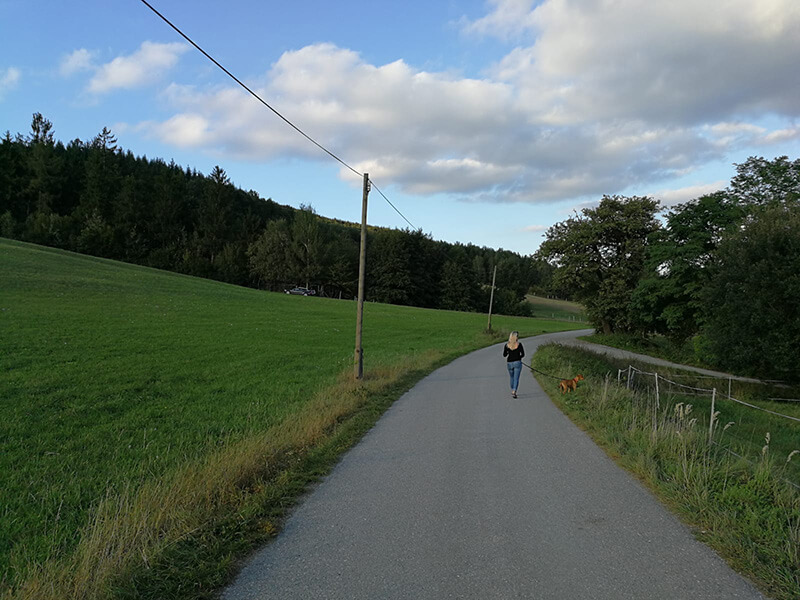 An der Leine gehen, im Auto mitfahren, sowie die Grundkommandos beherrscht er schon ganz gut. Er genießt die Spaziergänge im Wald, das Umherwandern im Bach (er ist ein Wasserratte), sich im Garten sonnen zu lassen, sowie das ausgiebige Schmusen :)