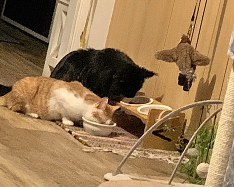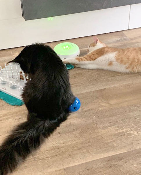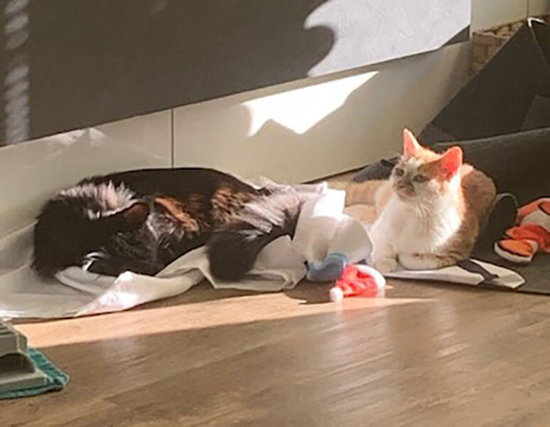 Sie fressen, spielen, schlafen und putzen sich gemeinsam. Die Zwei gibt’s ganz einfach nur noch im Doppelpack, selbst in der Nacht kommen Sie zu zweit zu uns ins Bett.