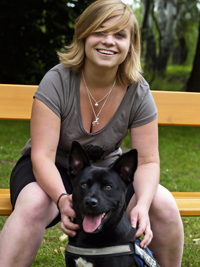 Hier ein Bild von mir und Rex und Überraschung, er hat die Ohren aufgestellt und sieht nicht aus wie verschrecktes Huhn ^;-), mag vielleicht an den Enten liegen die er beobachtet hat.