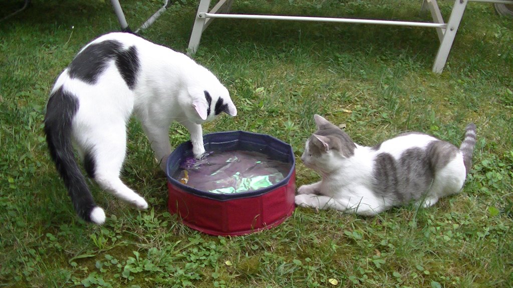 Sie haben sogar ihr eigenes Liegebett und Planschbecken im Garten.