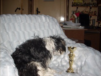 Am 16.10. waren wie drei bei einer Hundeausstellung in Deutschland und ich habe im Mischlingsbewerb sogar einen Pokal gewonnen. Natürlich habe ich mich von meiner besten Seite gezeigt.