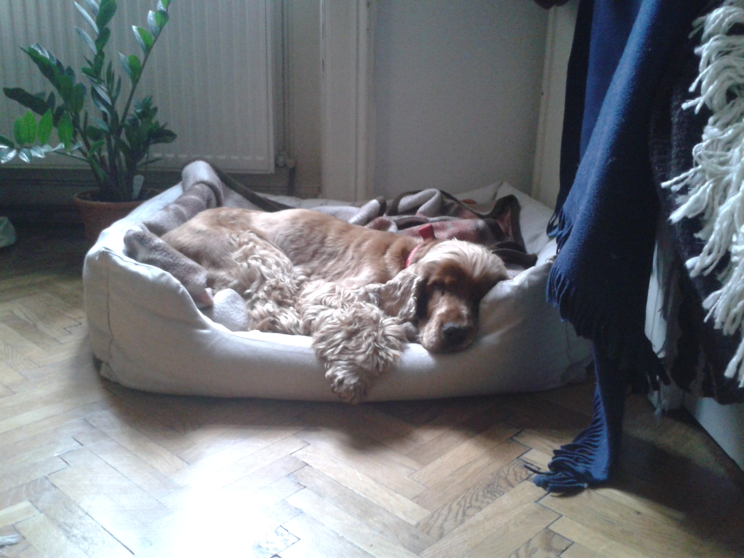 ... ist ein so lieber Hund, wir freuen uns sehr ihn bei uns zu haben. Er ist nun schon zwei Monate bei uns und erfreut sich bester Gesundheit. Er hat zugenommen und erstaunt uns an manchen Tagen mit seiner großen Energie, wenn er zum Beispiel die Treppen hochrennt und zwei bis drei Stufen auf einmal nimmt wie ein Dreijähriger, dabei wird er bald dreizehn Jahre alt. Gerade wenn´s ums Essen geht könnte er Bäume versetzen. Er kuschelt gerne und geht gerne spazieren, wobei er an regnerischen Tagen am Liebsten in seinem oder unserem Bettchen liegt.