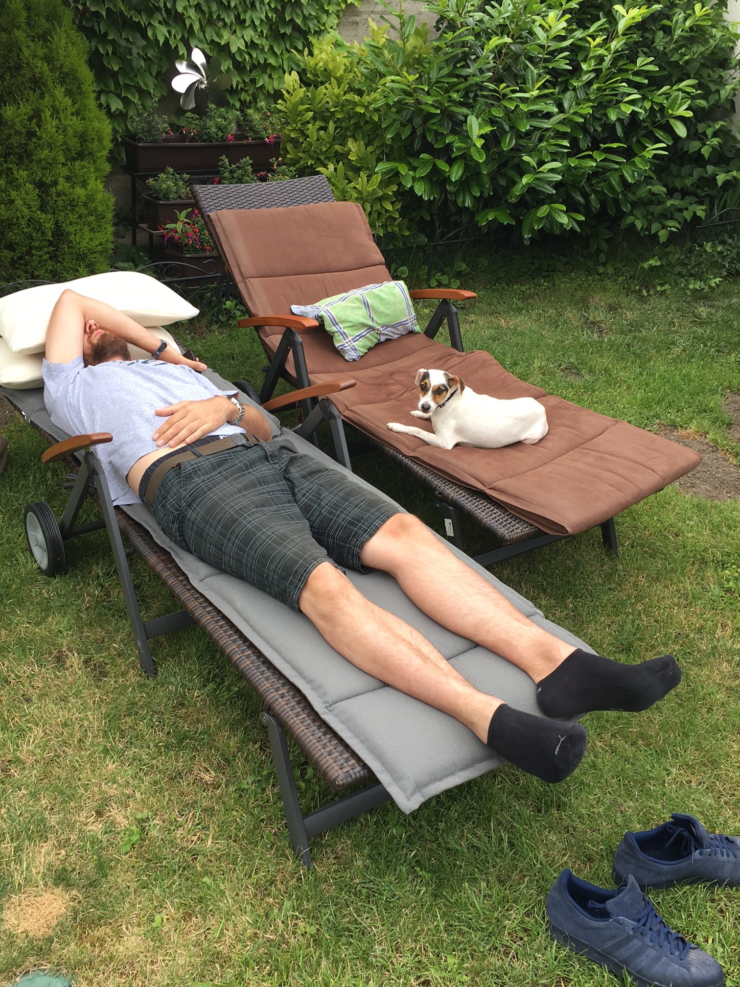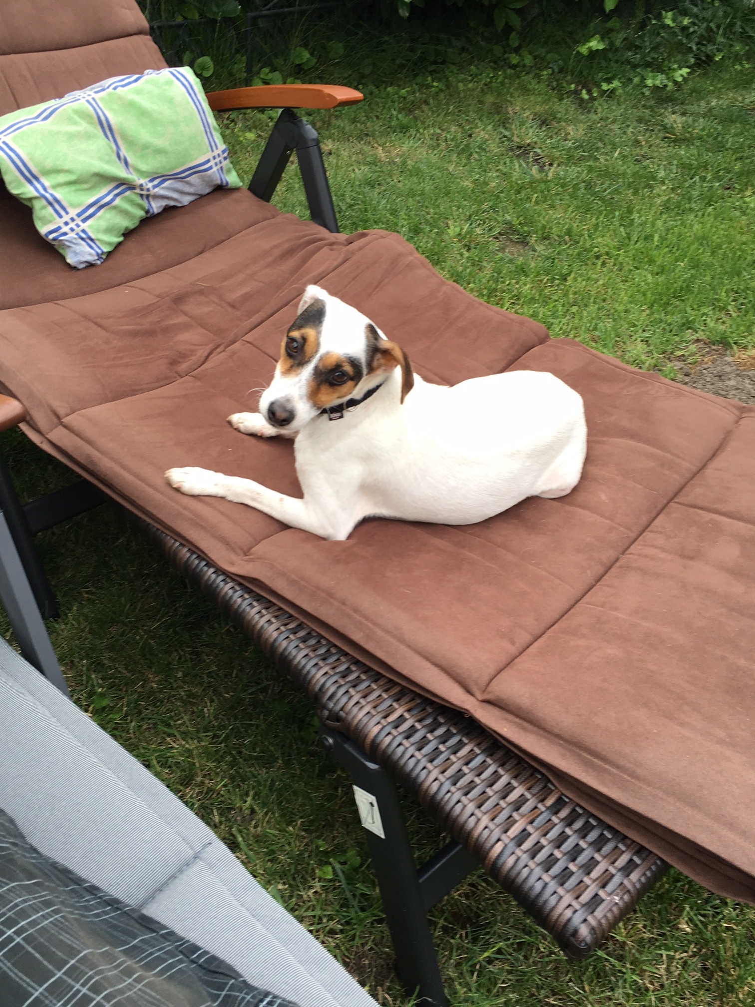 Sie hat in jedem Raum ein Bettchen, wobei sie da noch sehr schüchtern ist, sie ist lieber im Garten denn da kann sie flüchten. Abends haben wir sie schon soweit das sie auf die Couch kommt – wenn sich keiner von uns bewegt :-))))
