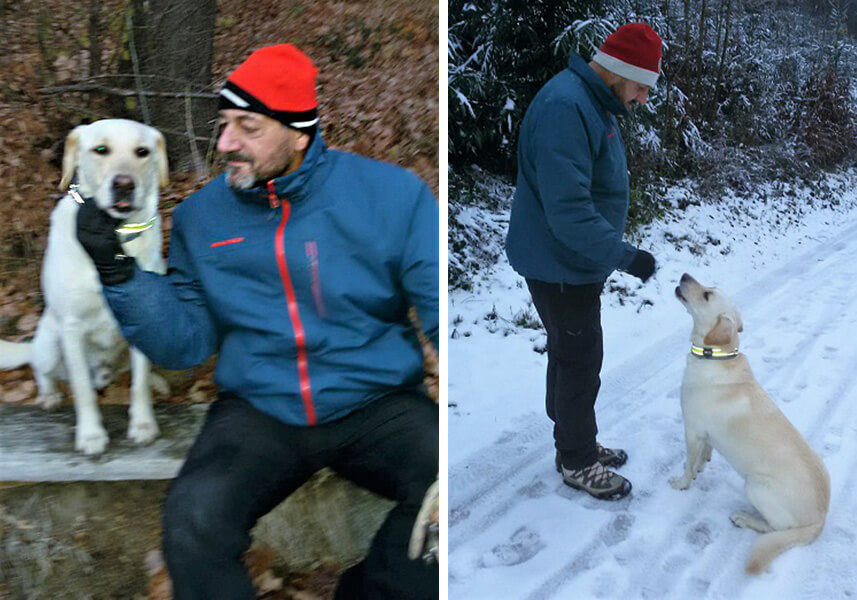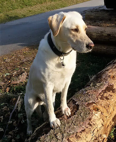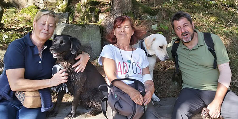 Sammy nach einer 15 km Wanderung. Sammy war für uns ein richtiger Glücksfall. Er hält uns in Bewegung und gesund. Er ist auch bei allen beliebt.