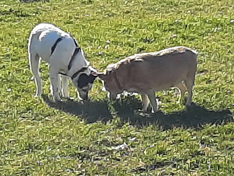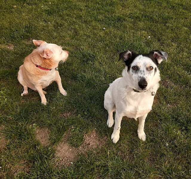 Spotty geht es sehr gut, sie ist tüchtig gewachsen und sehr lernfreudig. Uns hat sie schnell als ihr Rudel akzeptiert und weicht nicht von unserer Seite.