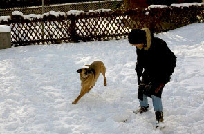 hatte sie (wie wahrscheinlich jeder Hund der von jetzt auf gleich in eine neue Umgebung kommt) ein bißchen Angst vor dieser völlig neuen, völlig fremden Welt, aber durch ihr absolut gefestigtes Grundvertrauen in den Menschen ging diese Phase schnell vorbei. Sie hat uns sofort als neue Familie akzeptiert, die Katzen ebenfalls und nachdem sie gemerkt hat, dass es eigentlich ein großer Spaß ist frei durch den Garten zu tollen und im Schnee zu graben, hat sie auch schnell Selbstvertrauen gewonnen. Autofahren, ins Büro mitkommen, Zugfahrt nach Wien und anschließendes Menschengetümmel