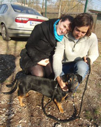In Lovasbereny angekommen, sahen wir Tibor schon aus dem Auto. Er war ein bißchen kleiner als ich es erwartet hatte (ich war an große Hunde gewöhnt), aber es gefiel uns von Anfang an wie neugierig er war. Zuerst verbrachten wir ein paar Minuten mit ihm und anderen Hunden im Haus und durften ihn dann zu einem kurzen Spaziergang entführen. In dieser kurzen Zeit wuchs uns dieser kleine Hund schon sehr ans Herz, dennoch beschlossen wir ihn erst eine Woche später zu uns nach Hause zu holen um noch alles in Ruhe vorbereiten zu können.