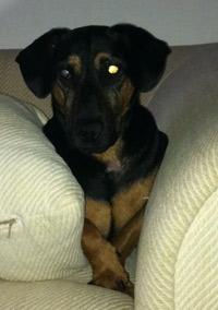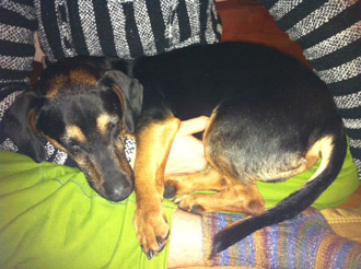 Tibor ist inzwischen so mutig und frech geworden, dass er sogar in der Nach heimlich auf die Couch springt um dort zu schlafen, obwohl er genau weiß, dass er das nicht darf. Das erste Mal, als er das probiert hat, ist er in der Früh nicht mehr von der Couch hinunter gekommen, weil er scheinbar vergessen hatte wie tief es bis zum Boden ist und die Shcnauze zu kurz ist um das auszutesten, aber inzwischen springt er in der Nacht hinauf (trotz Polsterbarrikade!) und in der Früh, wenn die Türe geöffnet wird, wieder hinunter und legt sich auf seine weiche Kuscheldecke... so ein Lausbub!
