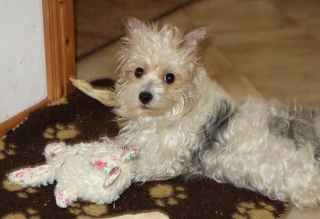 Sie liebt unseren Hund Napoleon über alles. Je länger sie da ist, desto selbstbewusster wird sie.