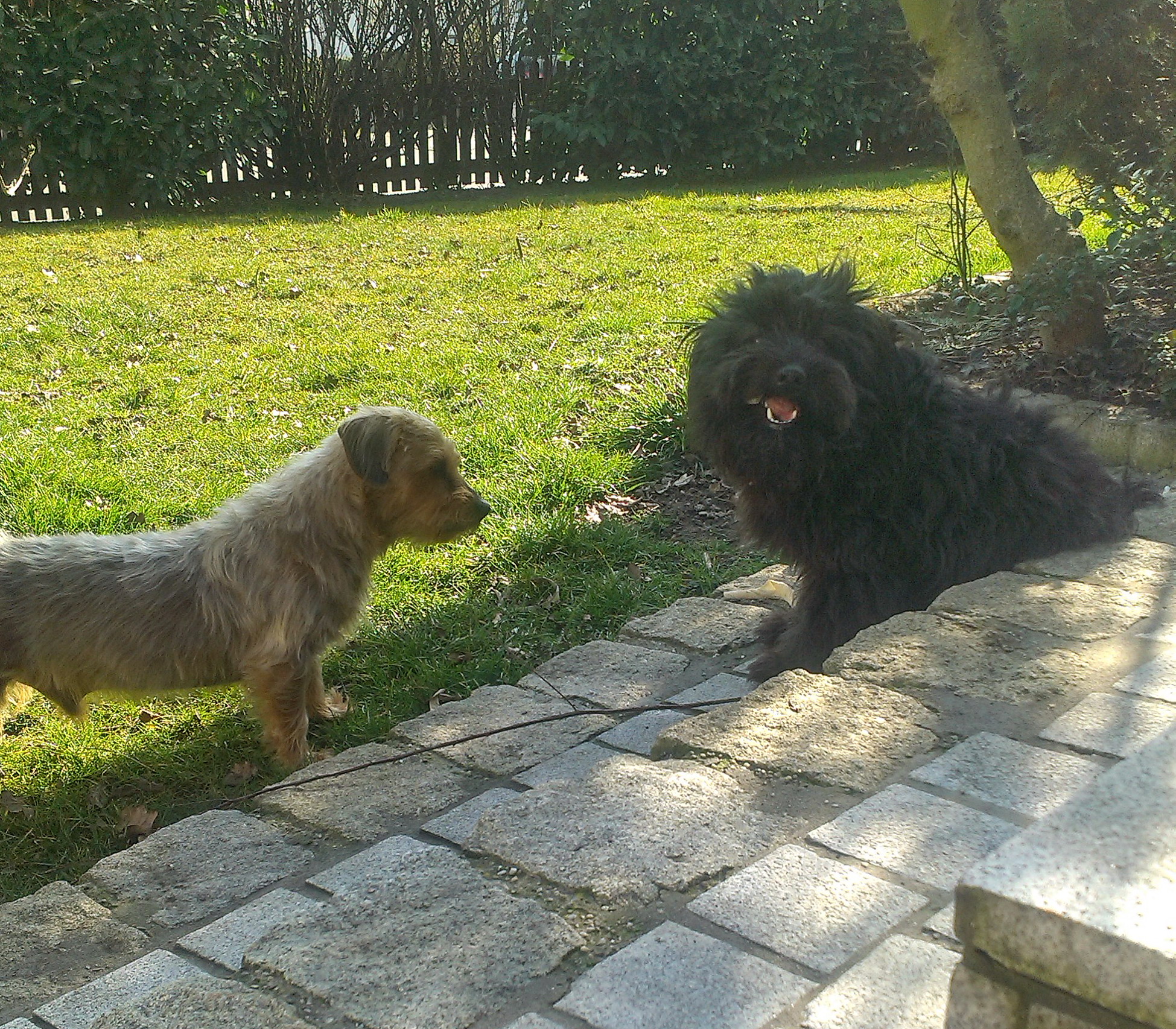 Ich bin ja jetzt schon zwei Monate bei meiner Familie und meinem Kumpel Maxi, und ich muss sagen, ich fühl mich pudelwohl hier! Den ganzen Tag kann ich herumtollen, das ist ja so super. Naja, Maxi wird es manchmal ein bisserl zu viel, aber er ist ja halt auch schon etwas älter. Frauchen verwöhnt uns ja sooooo mit Leckerli und Spielzeug, es ist einfach toll!! Nur heute war ja nicht so der Brüller, ich musste zum Haare schneiden, weil mein Frauchen meinte, ich seh´ aus wie ein Teddy! Ja ich muss auch sagen, mir war das dicke Fell schon zu warm und jetzt bin ich froh, dass ich so einen stylischen Schnitt bekommen habe und die im Hundestudio waren ja so begeistert von mir, weil ich ja so brav war!!