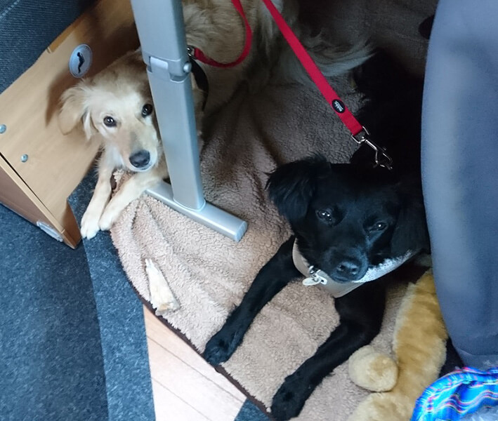 Autofahren und auch Ausflüge mit dem Campingbus sind auch für beide kein Problem!