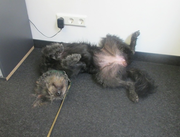 Whoopies Büroalltag macht sie ziemlich schläfrig (zweimal pro Woche). Sie hat sich zu einem süßen Hund entwickelt, ist noch immer sehr sehr sehr aktiv, liebt alle Menschen und ich bin sehr froh, sie zu haben.