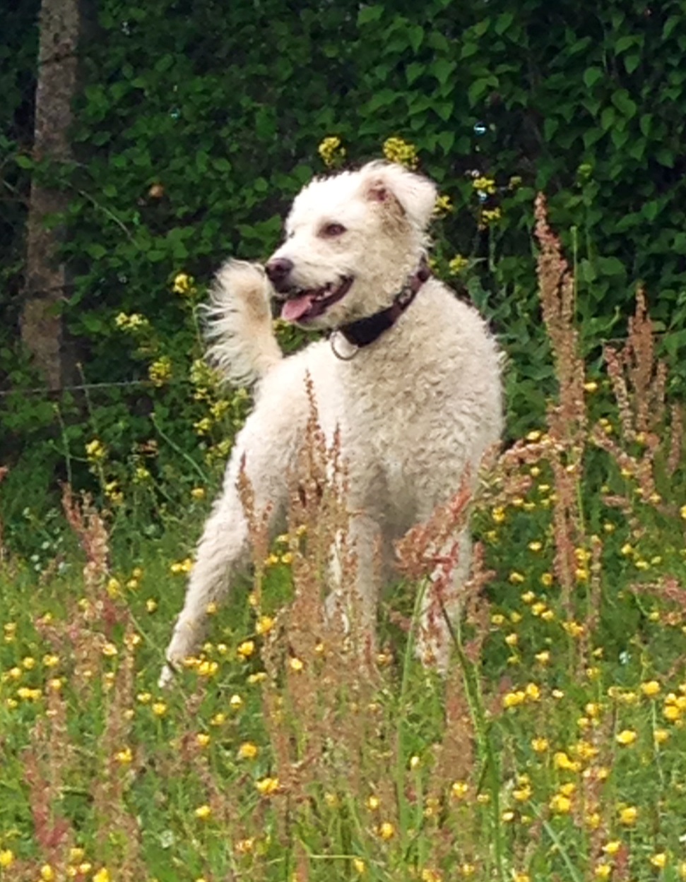 His love for his family and walks and running around after balls and other dogs is matched only by his love of pigs ears! And we are very lucky that he allows us to lie in his bed, on his sofa and in his house - yes, he treats the place like it's his own :))