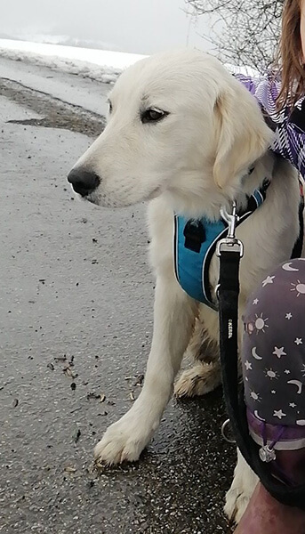Er liebt es spazieren zu gehen und ist schon rein in der Nacht. Er hört auch schon ein bisschen auf seinen Namen und geht uns schon zu, wenn wir in rufen 🙂
