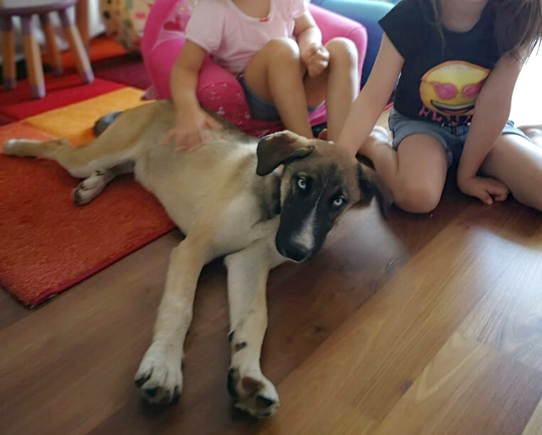 Woody geht es einfach prima, die erste Nacht war traumhaft. Er hat nicht einmal reingemacht sondern sich gemeldet, wenn er musste. Er genießt die viele Liebe und Zuneigung, die er von uns bekommt.