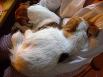 Als wir Zita (vormals Zazi) am 04.09.10 in Ungarn abgeholt haben,wussten wir sofort sie würde unser Leben bereichern. Nach knapp einem Monat bei uns ist sie nun schon eine kleine Persönlichkeit. Mit unseren 2 Hunden (Mischa 16 Monate Parson Russell auf Foto mit Zita und Winni 15