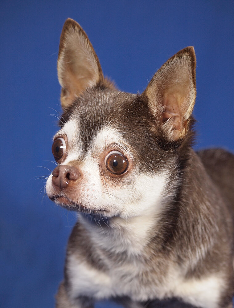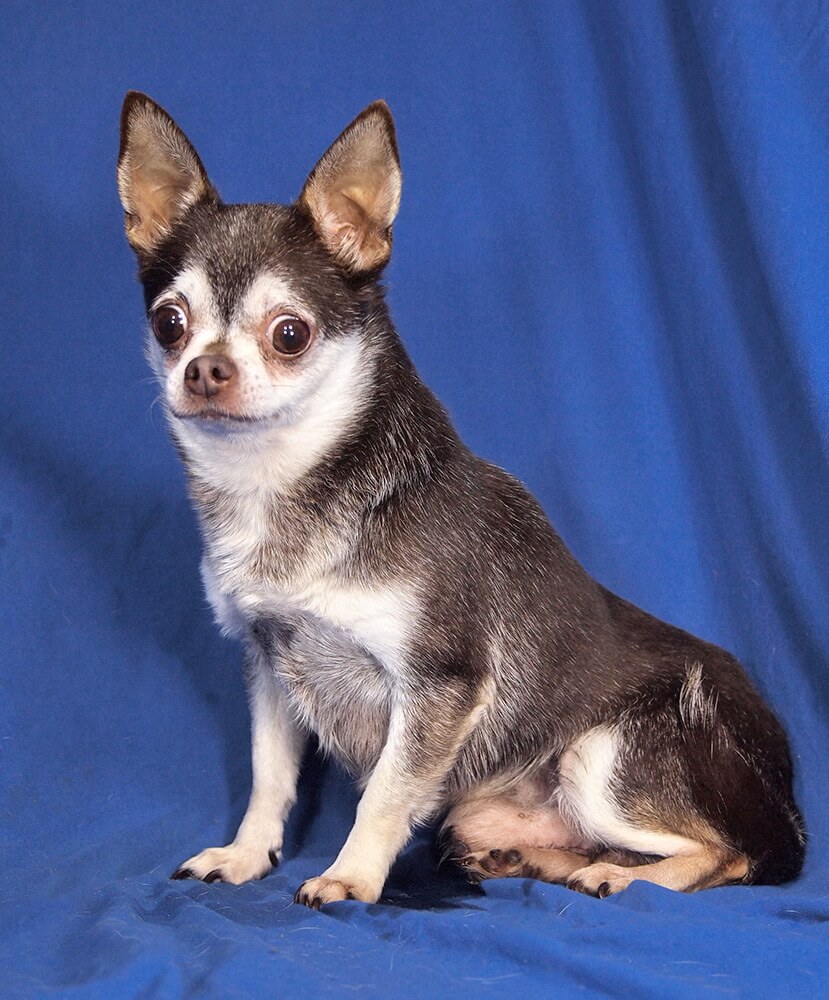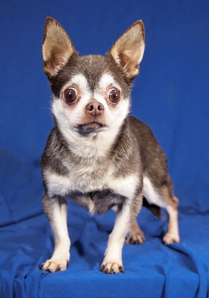 Der Rüde hat eine Schulterhöhe von 22 cm und wiegt 2 kg.