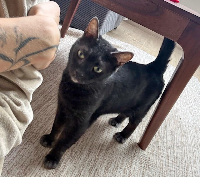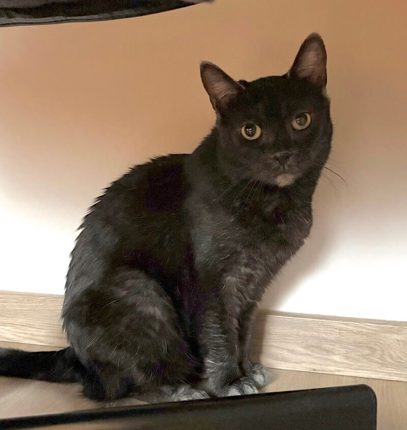 Nachdem sie eine ihr unbekannte Umgebung in Ruhe kennen lernen konnte und erkannt hat, dass man es gut mit ihr meint, fasst sie Vertrauen und entwickelt sich zu einer verschmusten und liebenswerten Hausgenossin, die ihren Bezugspersonen überhallhin folgt. Sie wird dann auch Freude am Spielen zeigen, ist allerdings für Familien mit Kindern nicht geeignet, da ihr diese zu viel Stress verursachen würden.